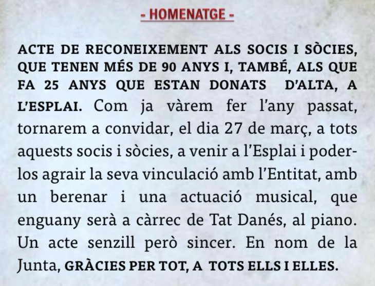 Un any més, la Junta de l’Esplai hem tancat un acord amb els organitzadors de Jardins de Besalú, per oferir…