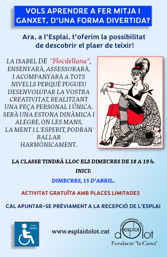 Dimecres 15 d’abril a l’Esplai de 18h a 19h.