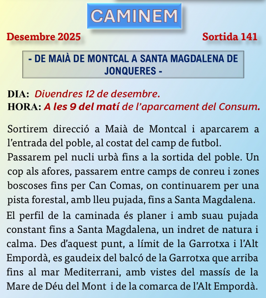 Caminem de Maià de Montcal a Santa Magdalena de Jonqueres.